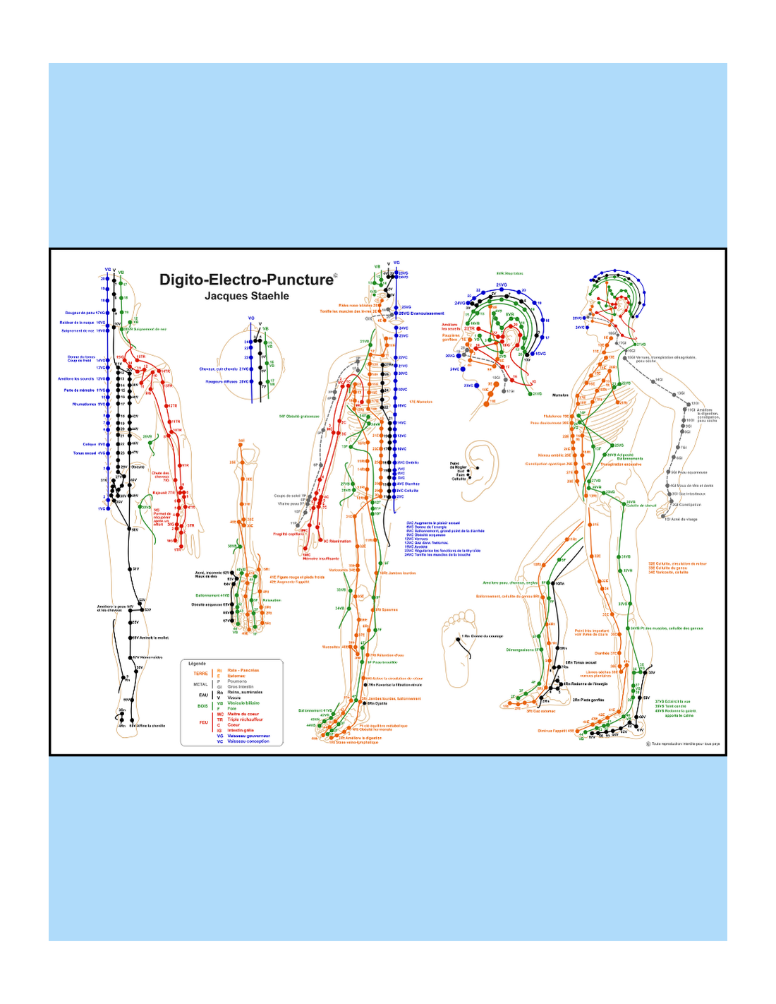 Un grand poster couleur pour localiser facilement les points principaux à stimuler.