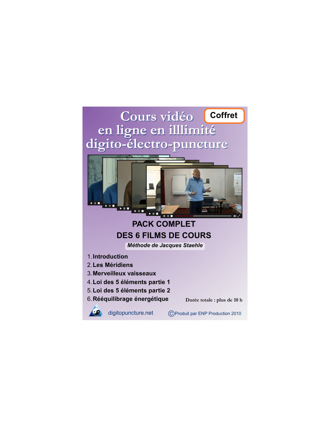 Ce coffret de formation vous permet d’apprendre la digitopuncture pas à pas, à domicile, à l’aide d’outils professionnels : livres, vidéos de stages, poster des points énergétiques, test de la loi des 5 éléments, etc.